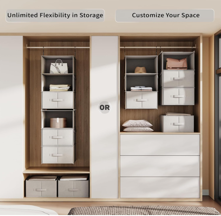 6-Shelf Hanging Closet Organizer, 2 Separable 3-Shelf Hanging Shelves with 3 Drawers Price:¥